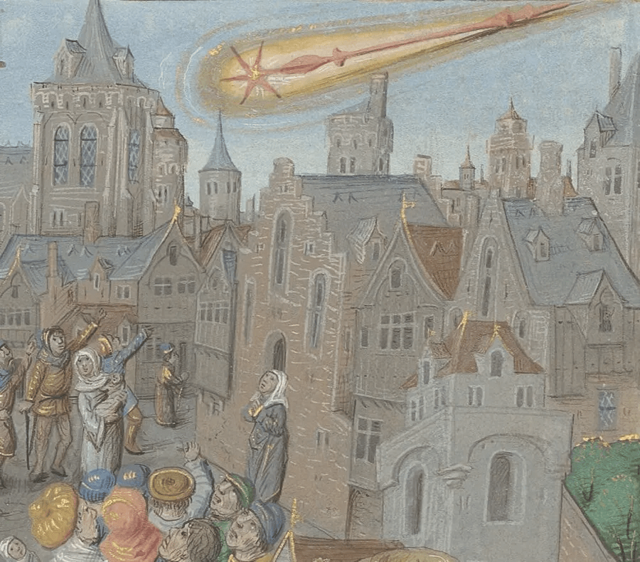 The first comet recorded in the Anglo-Saxon Chronicles was in 678 AD, “HER ATEOWEDE COMETA AND SCAN III MON AS AELCE MORGEN SWlLCE SUNNE BEAM.” “In this year appeared the star called comet, in August, and shone for three months each morning like a sunbeam.”