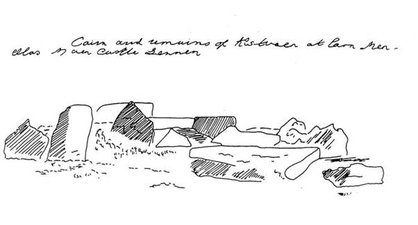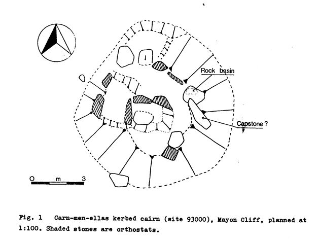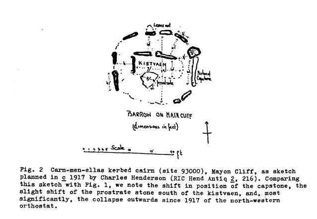 Carn-men-ellas kerbed cairn. Charles Henderson, 1917 (RIC Hend Antiq 2, 216).