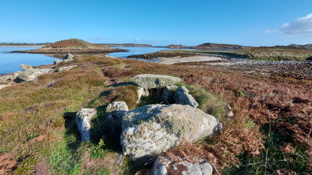 Pictures from a visit in October 2022 to find the passage tombs on the uninhabited islands of Little, Middle and Great Arthur. These islands are part of the Eastern Isles of the Isles of Scilly. There are 6 passage graves which were photographed across the 3 Arthur islands, along with a cist on Little Arthur.