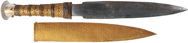 Only sixteen known iron objects predate 3000 BCE and these are outlined in the table below. The earliest worked meteorite objects, three beads, were discovered recently in 2014 at Lake Świdwie  Poland. This exciting discovery was mentioned in the 2020 Yearbook in Astronomy. Dating from 7000 BCE this is not only the earliest example of meteorite-worked iron but one of the earliest worked metal objects in the world. Due to the location of its discovery, the significance cannot be overstated. All the other objects from this period come from the cradle of civilisation and northern Poland sits well outside this region. Prior to this the nine blackened beads found in a pre-dynastic cemetery near el-Gerzeh, Egypt were the oldest known worked iron meteorite objects. The beads were scanned and revealed the distinctive Widmanstätten structure found in iron meteorites. During this investigation of the beads Professor Thilo Rehren of the Petrie Museum, (University College London) discovered a little about the technique used to create the objects saying “The shape of the beads was obtained by smiting and rolling, most likely involving multiple cycles of hammering, and not by the traditional stone-working techniques such as carving or drilling which were used for the other beads found in the same tomb.” Furthermore, he felt that the Egyptians had an advanced understanding of the material they were using, suggesting that they had worked with the material before. The final object in the table below is a bit of an anomaly itself. It was identified as terrestrial smelted iron, a four-sided tool which was discovered in a tomb in Samarra in Mesopotamia. One suggestion is that the iron used in this object was obtained as a by-product from the extraction of another metal, although that does not explain how the society overcame the difficulties of achieving the high temperatures needed for the smelting process. It is a real possibility that retesting using Jambon’s Spectroscopy technique would identify it as being meteoritic in origin.