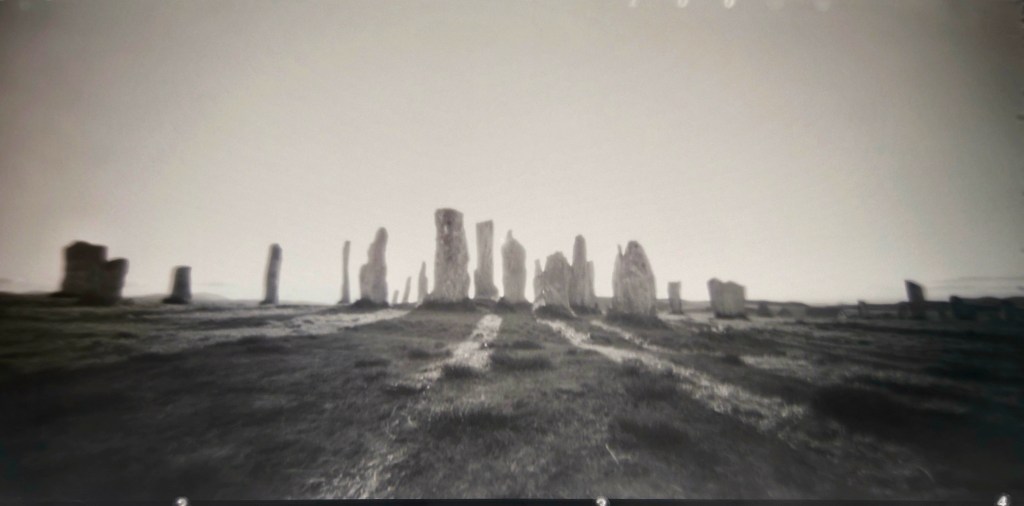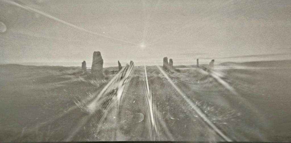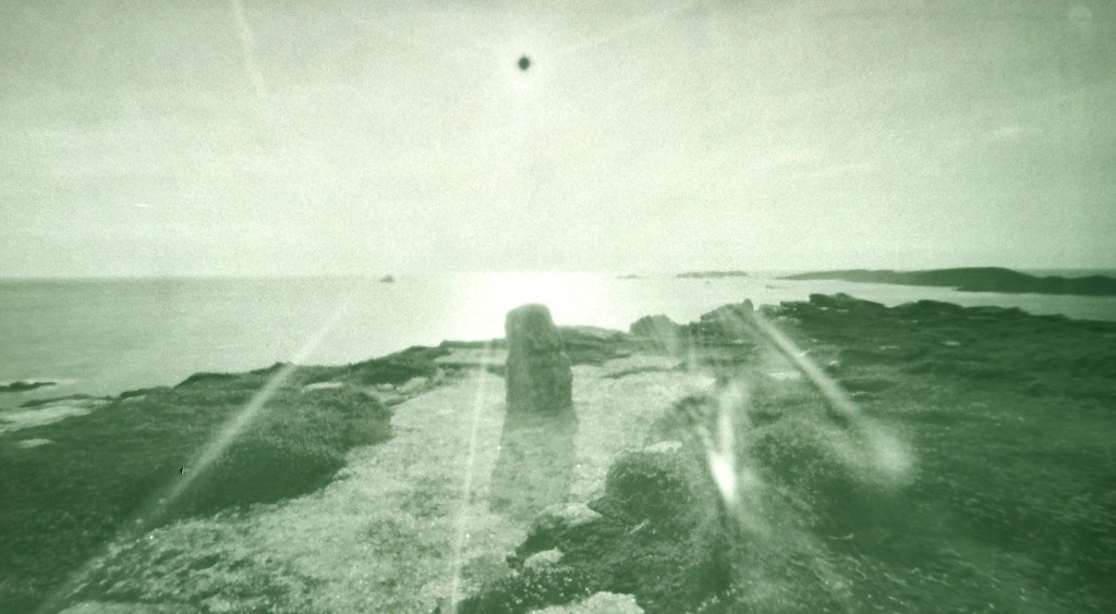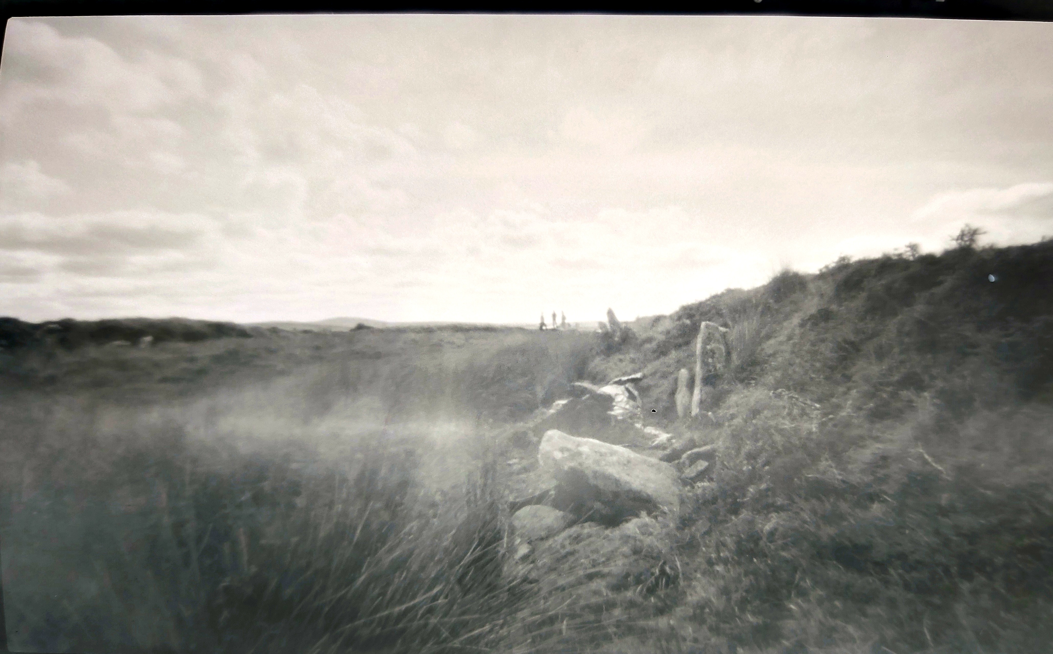 Pinhole photos on 120 film taken on visits to megalithic sites with the number Nine in their name. The intention is to record nine sites for nine seconds with the pinhole camera.